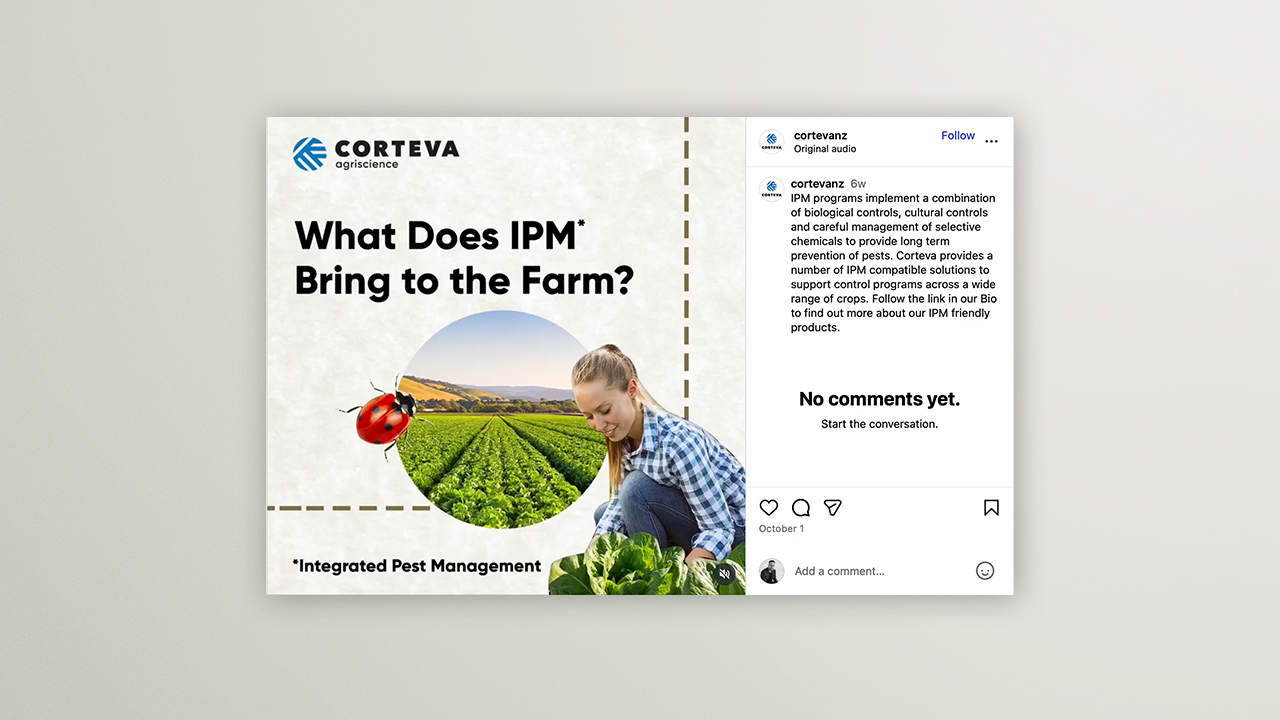 A series of short videos, infographics, and carousel ads educating US farmers about IPM—integrated pest management, and its benefits to the environment.