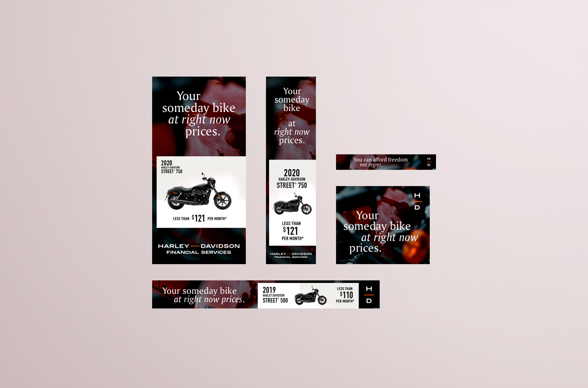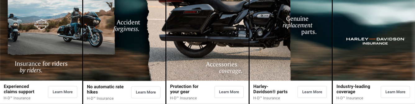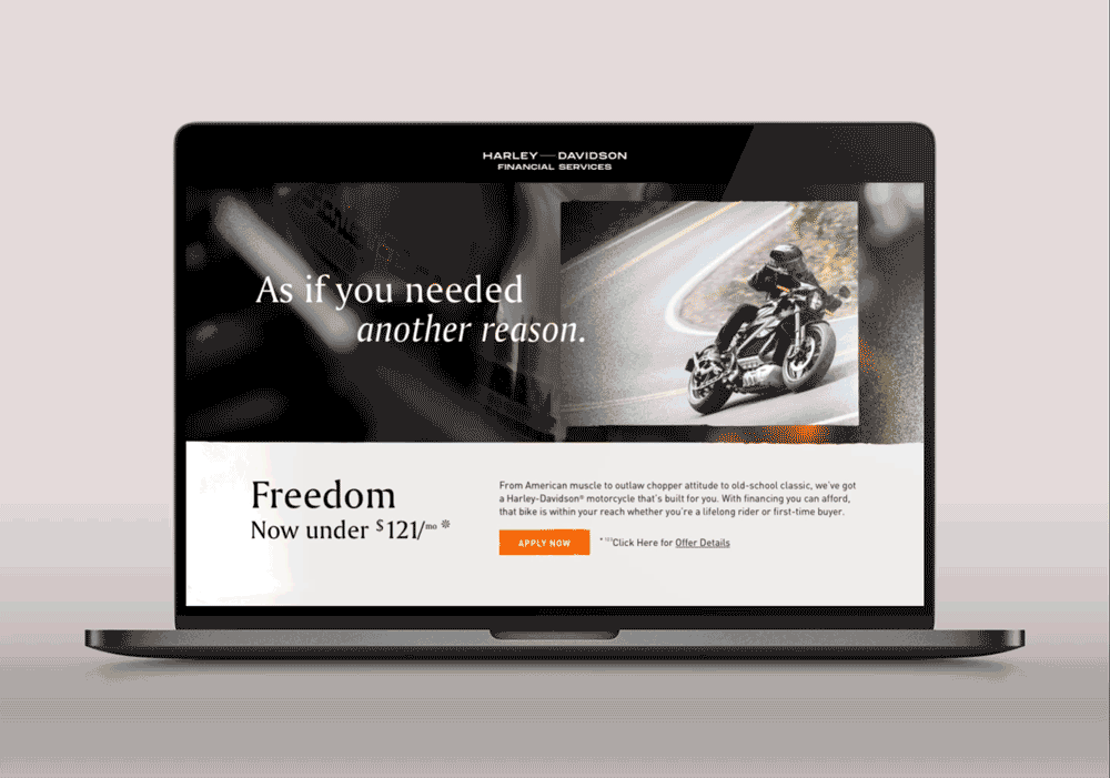Using their newly developed visual identity, Harley Davidson asked the team to redesign the look-and-feel of their financial services websites along with their associated advertisements on social media.